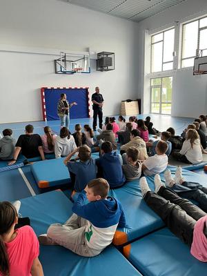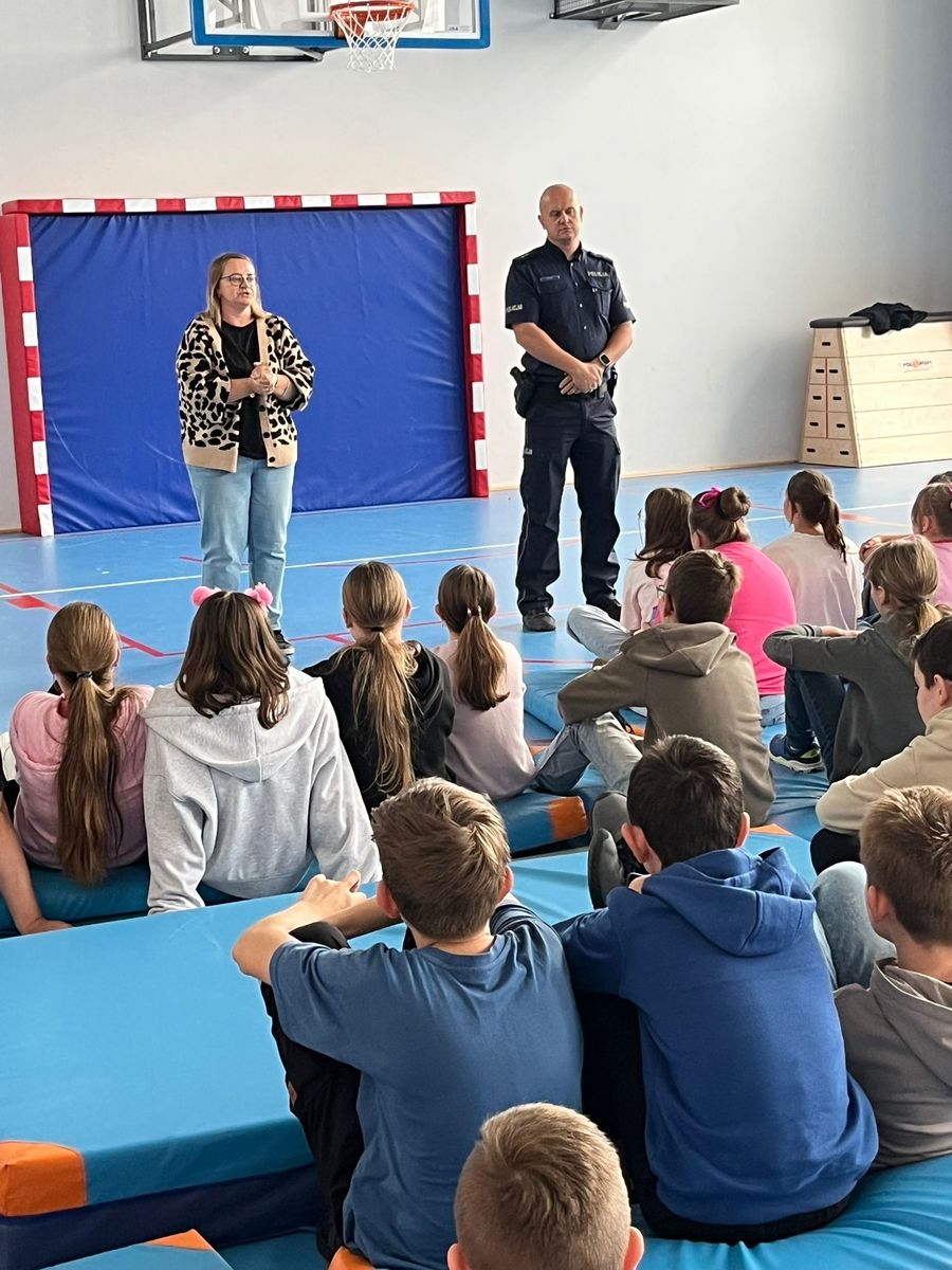 Policjant w przystępny sposób wyjaśnił dzieciom, czym jest hejt, jakie są jego formy oraz jakie skutki niesie ze sobą dla osób nim dotkniętych. Podkreślił, że zarówno słowa, jak i gesty mogą ranić i prowadzić do poważnych problemów emocjonalnych czy społecznych.