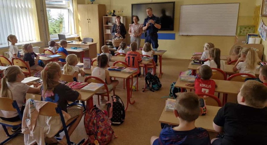 Przez cały wrzesień dzielnicowi z Posterunku Policji w Koszęcinie odwiedzali szkoły na terenie gminy, prowadząc zajęcia profilaktyczne w ramach akcji „Bezpieczna droga do szkoły”. Spotkania odbyły się w szkołach podstawowych w Sadowie, Rusinowicach, Strzebiniu oraz Koszęcinie.