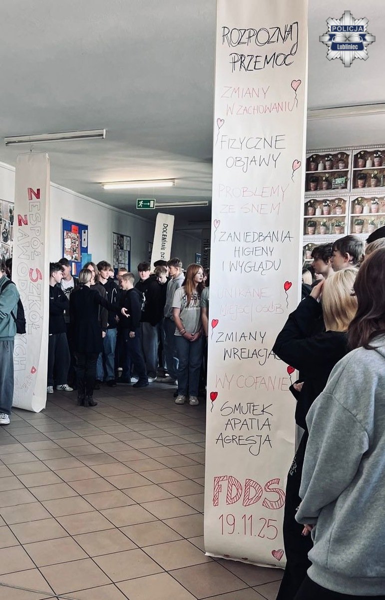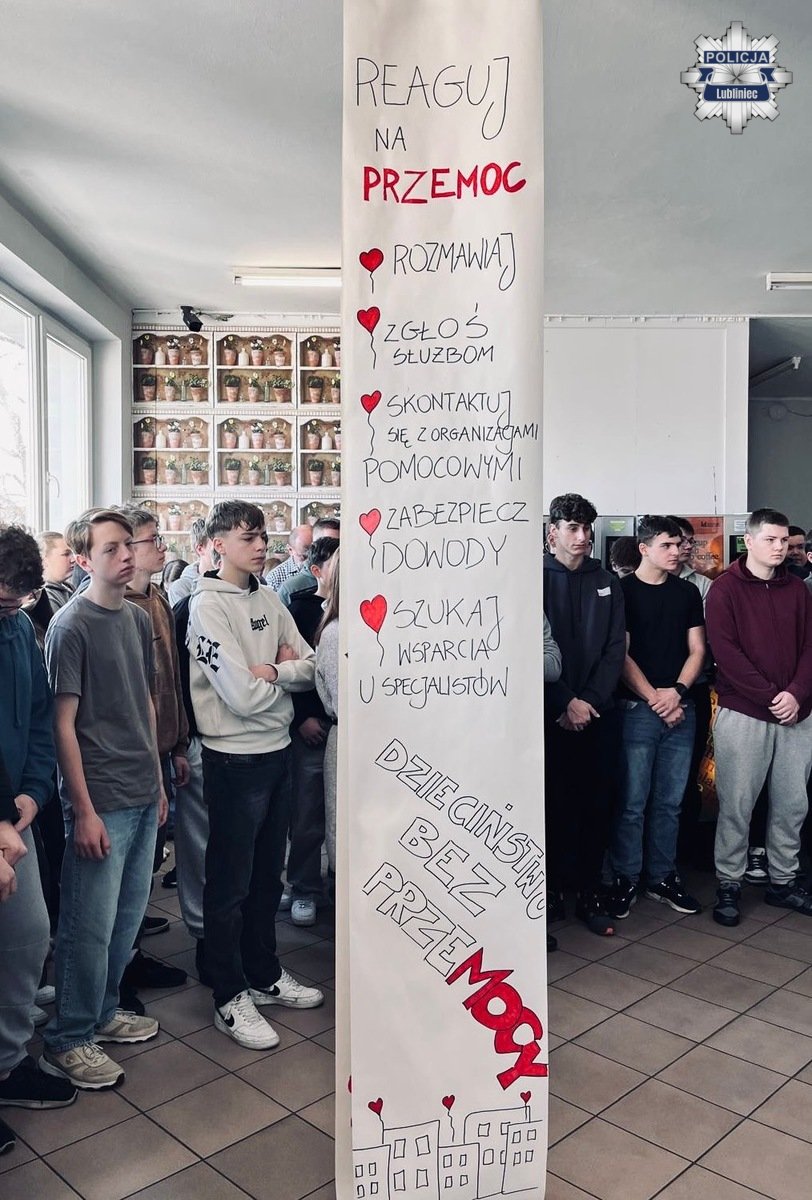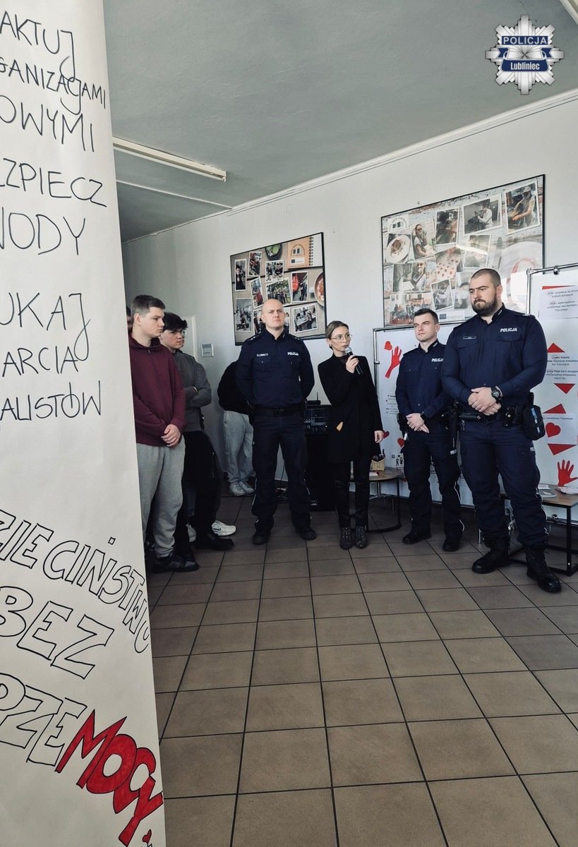 Policjanci lublinieckiej komendy, która włączyła się w kampanie, w dniu jej podsumowania 19 listopada 2025 r. odwiedzili uczniów z Zespółu Szkół Zawodowych w Lublinu przy ul. Klonowej, która również brała udział w kampanii.