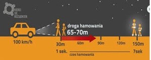 • z odblaskiem – już z kilkuset metrów.Te różnice mogą zadecydować o życiu, bo przy śliskiej nawierzchni droga hamowania samochodu wydłuża się nawet o kilkadziesiąt metrów.
