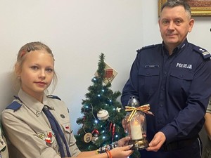 Światełko Betlejemskie dla policjantów od lublinieckich harcerzy