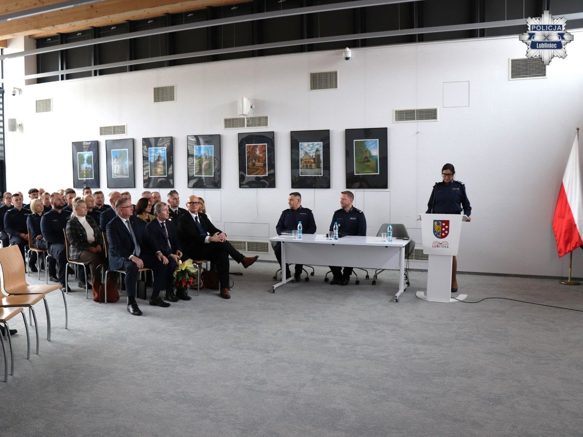 Przemawiający goście w swych wystąpieniach dziękowali policjantom za ich służbę, podkreślali znaczenie współpracy pomiędzy samorządem, a Policją oraz deklarowali dalsze wsparcie wspólnych działań na rzecz poprawy bezpieczeństwa mieszkańców powiatu lublinieckiego.